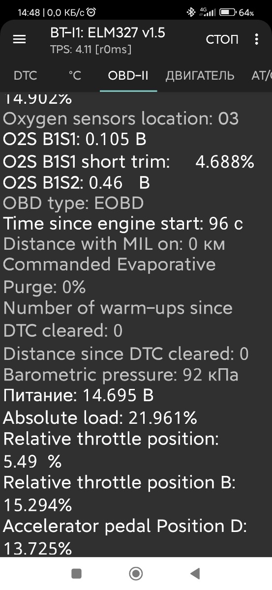 | Тип датчика кислорода | Бинарный (переключающий) |