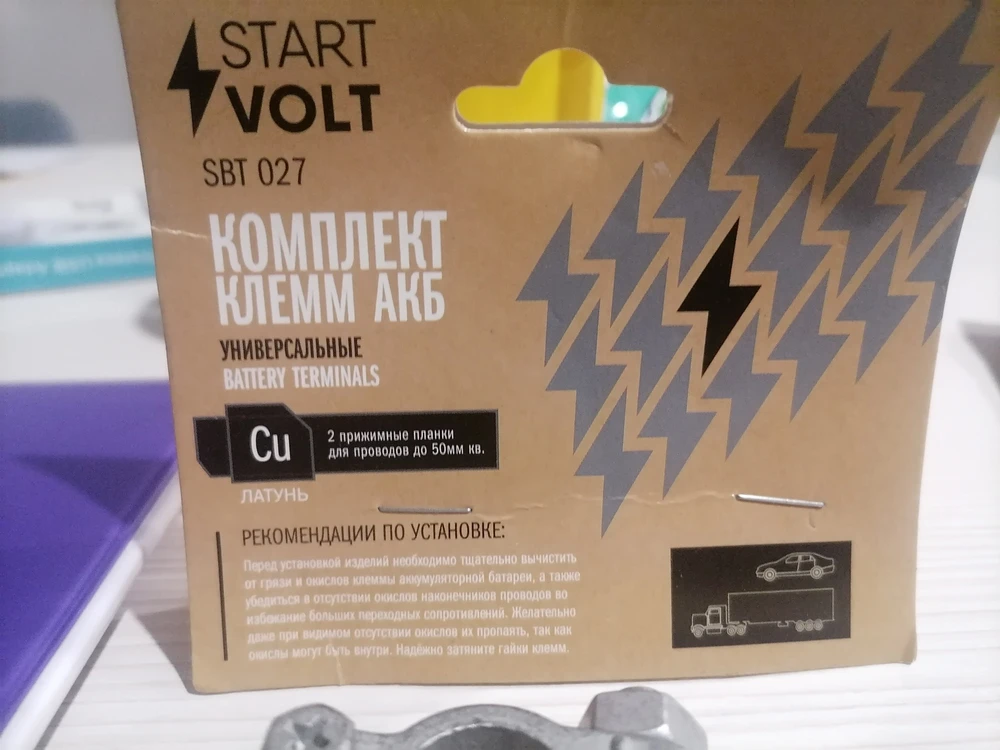 Клеммы АКБ в комплекте латунь, две прижимные планки для проводов до 50мм кв.