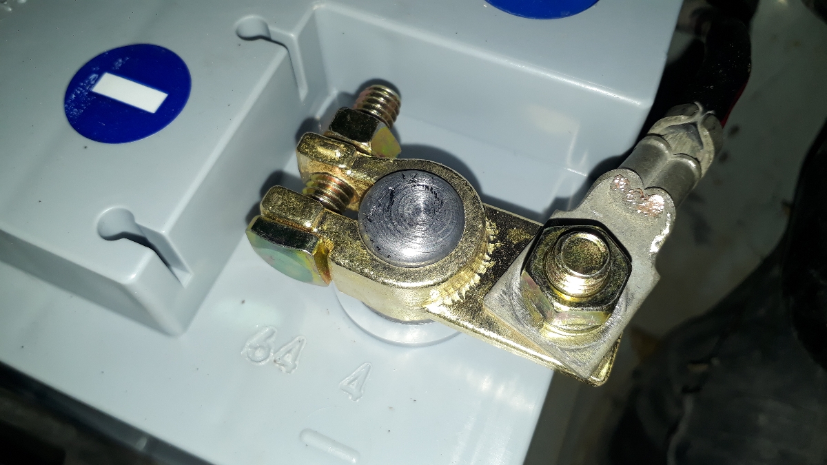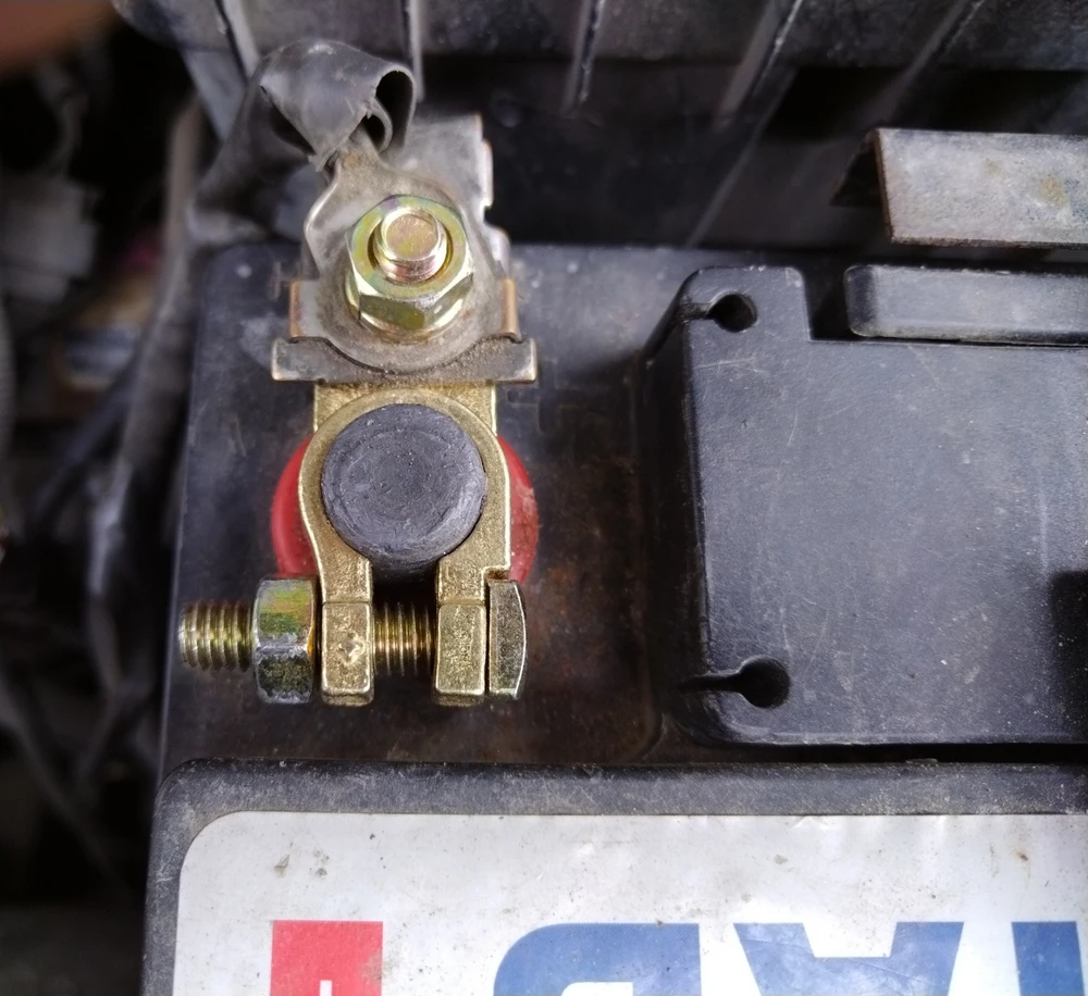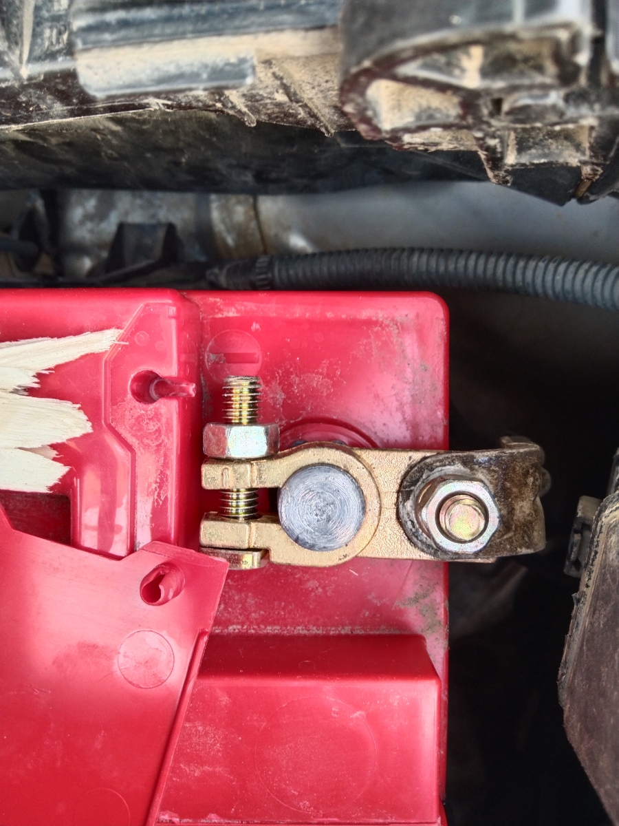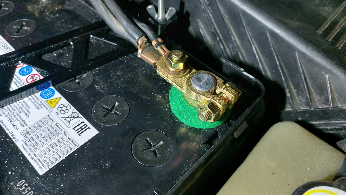 Хорошие массивные клеммы. Перед установкой не удержался и доработал напильником. Стало заметно лучше. Если вы перфекцианизмом не страдаете, советую хотя бы снять фаски с посадочного отверстия. Смущает, что затяжка клемм гайкой на 13. По мне, так достаточно на 10. Теперь два ключа нужно, чтобы снять аккум. На фото установленные клеммы уже после "напилинга"