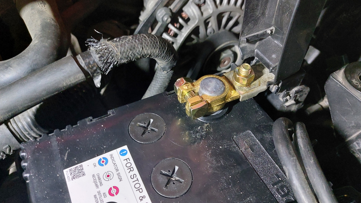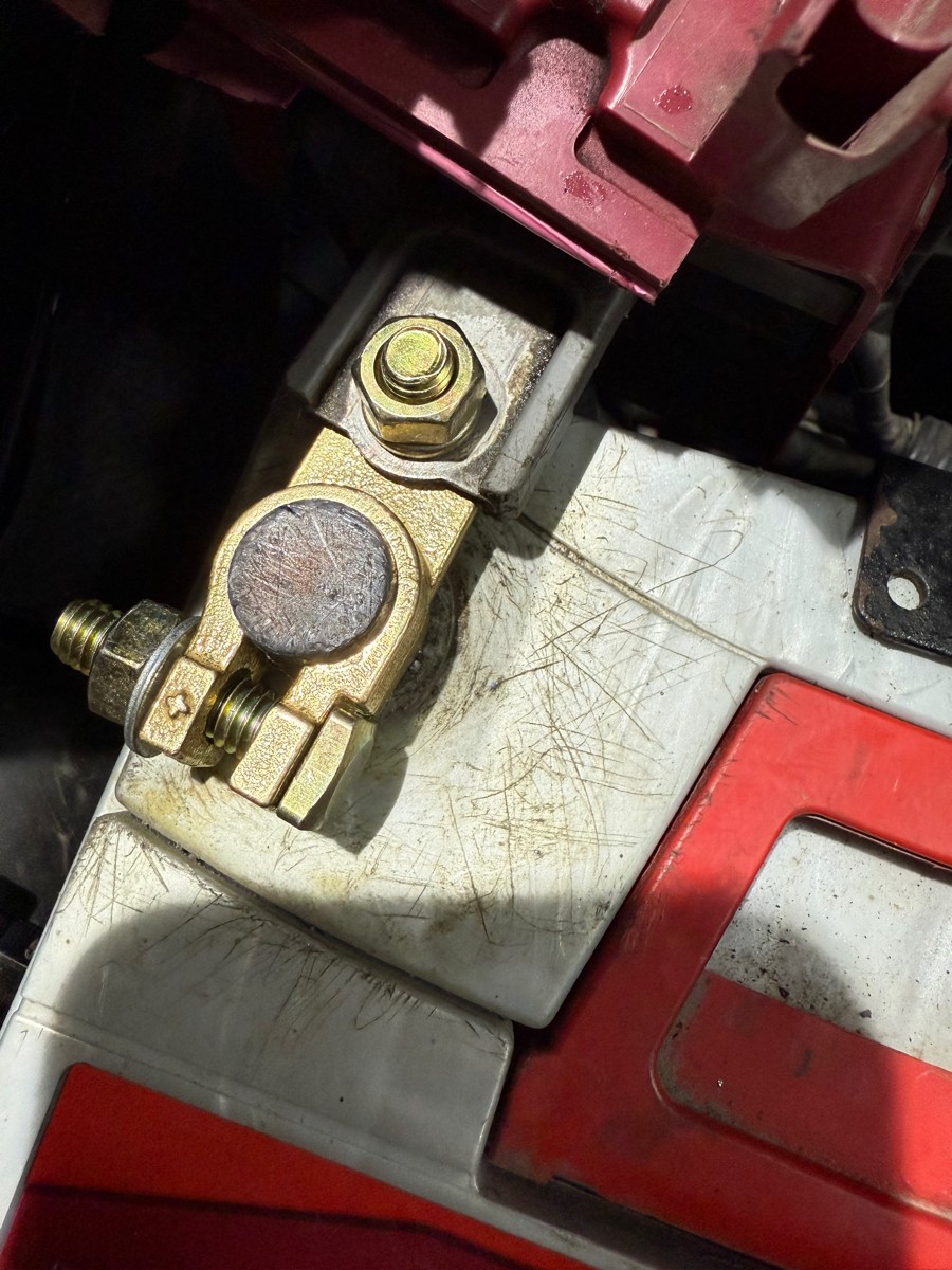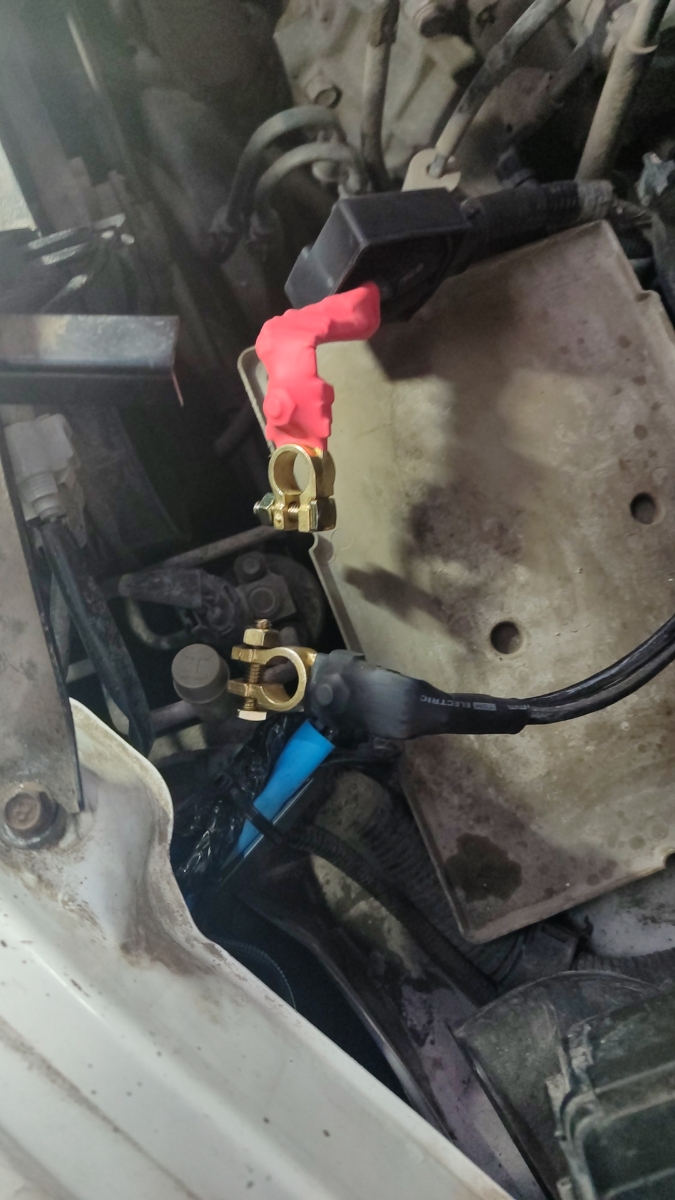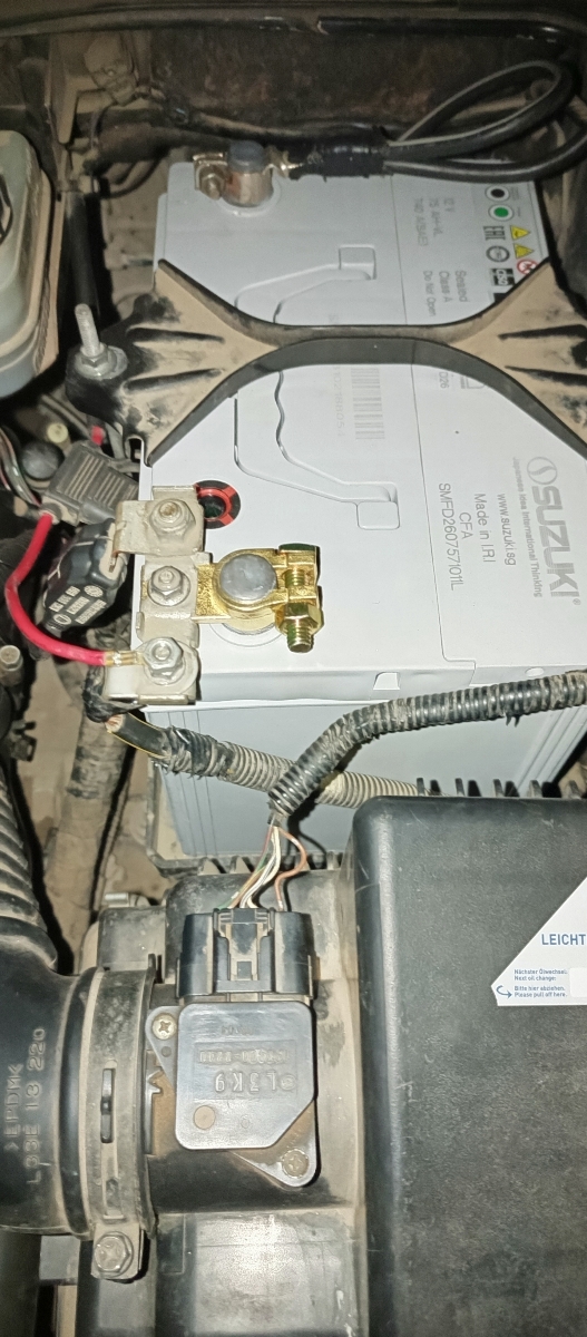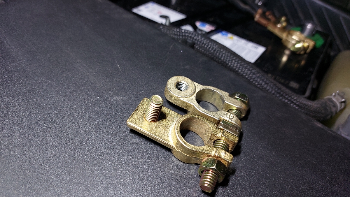 Хорошие массивные клеммы. Перед установкой не удержался и доработал напильником. Стало заметно лучше. Если вы перфекцианизмом не страдаете, советую хотя бы снять фаски с посадочного отверстия. Смущает, что затяжка клемм гайкой на 13. По мне, так достаточно на 10. Теперь два ключа нужно, чтобы снять аккум. На фото установленные клеммы уже после "напилинга"