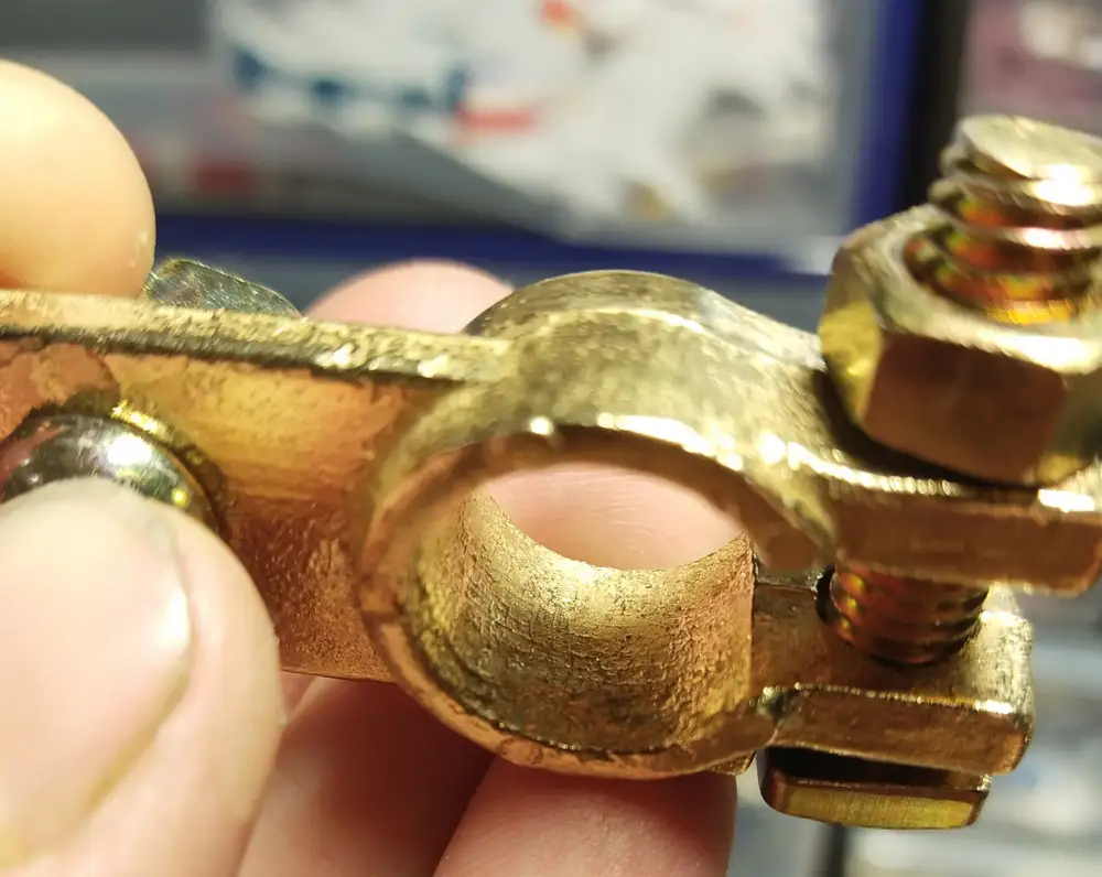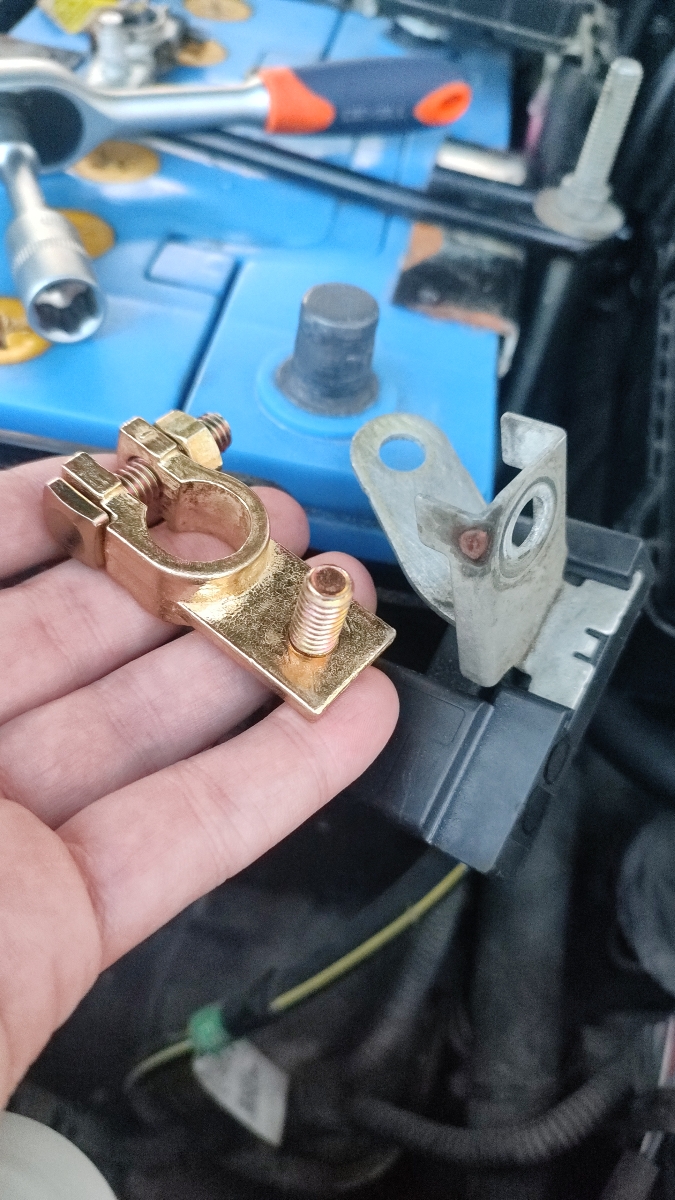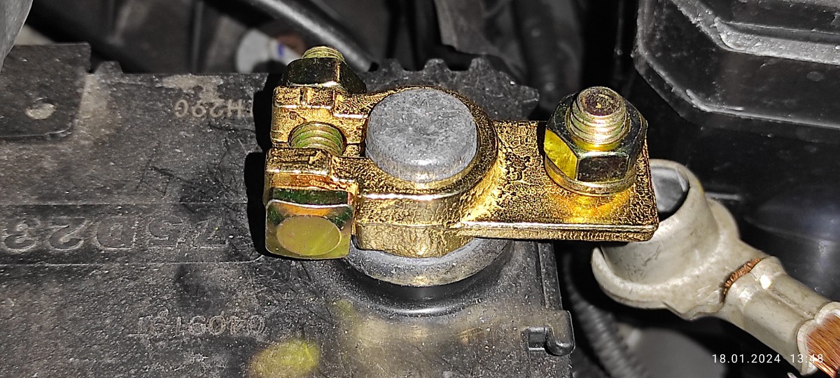 клеммы тяжёлые, напильником прошёл везде, жёлтая стружка, поставил на хендай Туксон 2008 года всё отлично