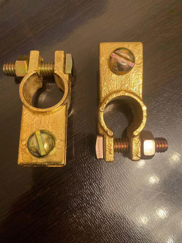 Клеммы SBT 003 – комплект клемм Positive (19 мм) и Negative (17.5 мм) европейского типа, материал латунь.