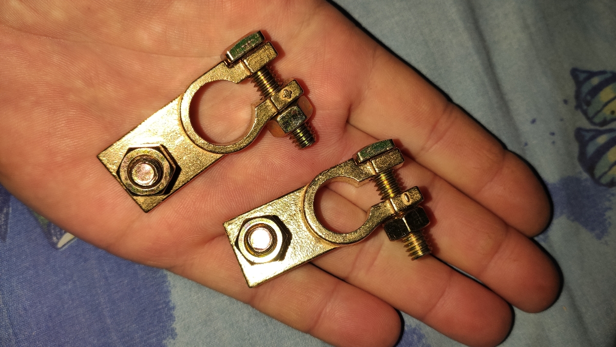 Хорошие клеммы. Винт в самой клемме держится на резьбе и не проворачивается при затягивании гайки.