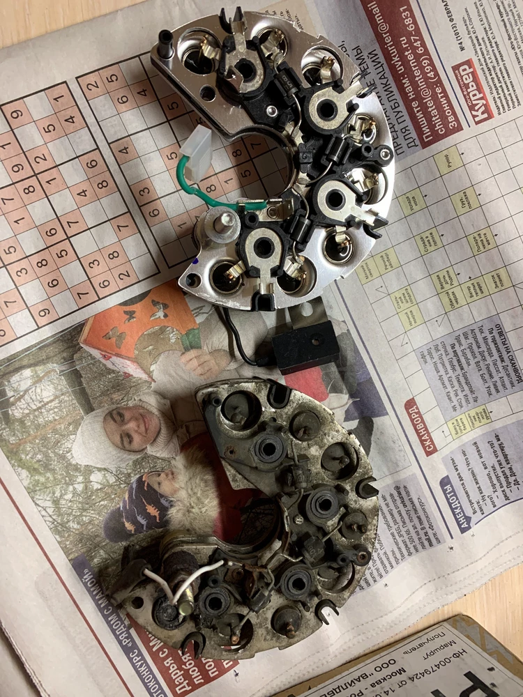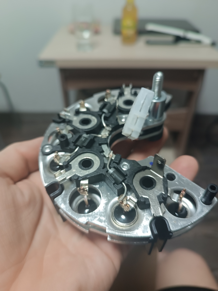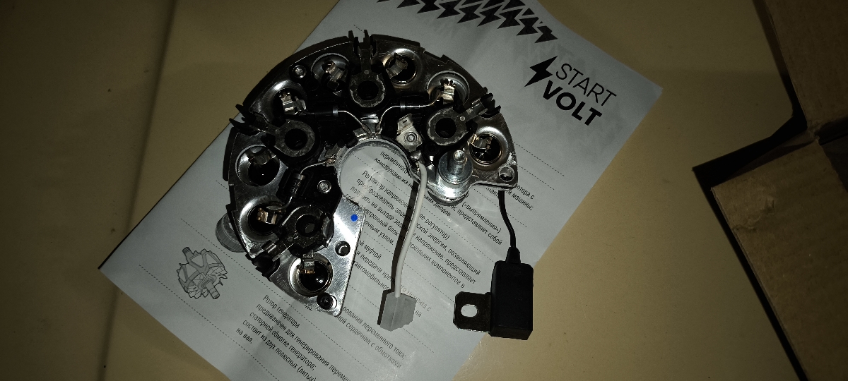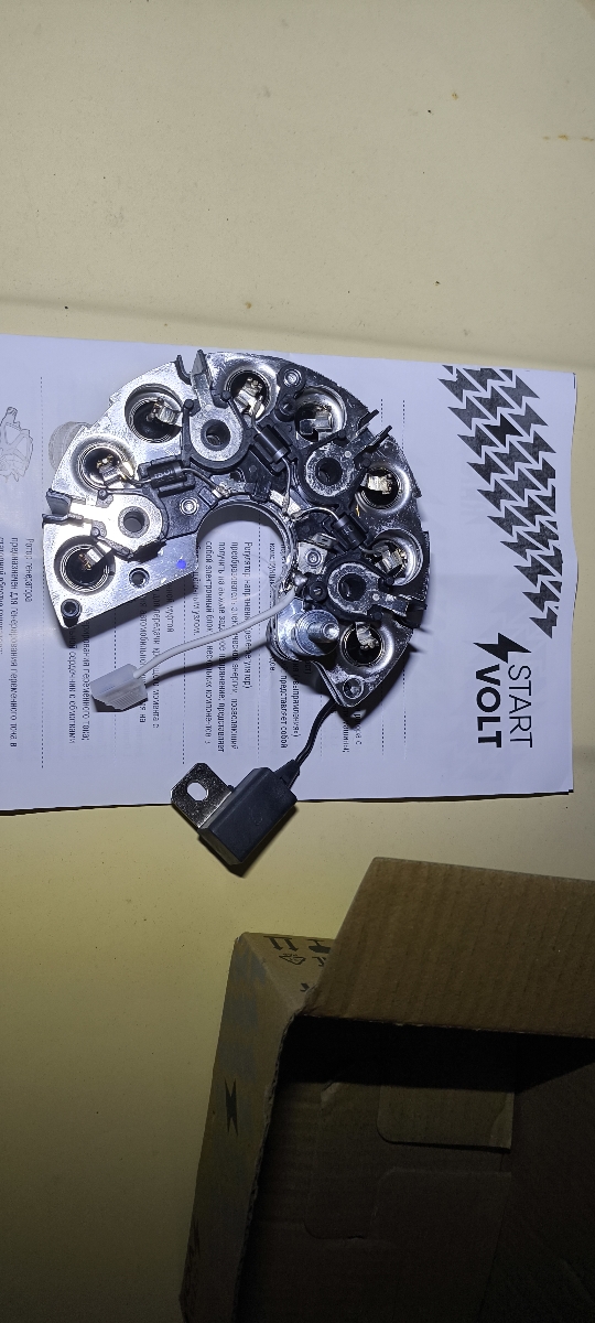 3 месяца работаетДостоинства: Исправный и рабочий диодный мост. Брал для генератора стартвольт lg01214(на фото старый мост). Вместе с 3х уровневым реле, теперь зарядка стабильная вне зависимости от нагрузки. Диодный мост поставляется в коробке и пакете, плюс доки.