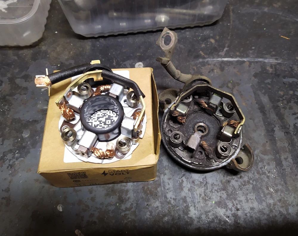 всё собрал, работает! цена хорошая! на фото новые щётки уже на якоре, и старые выработанные! к форд фокус 2 - 1.8 подошло идеал)