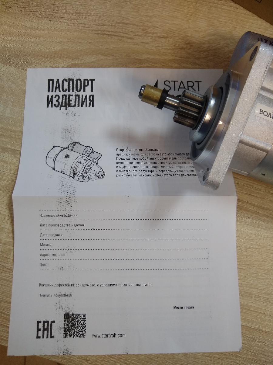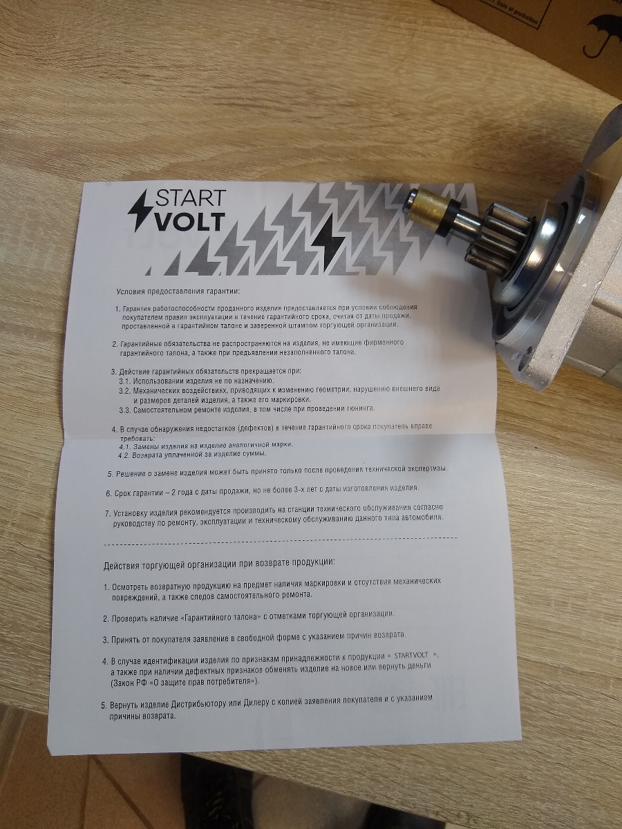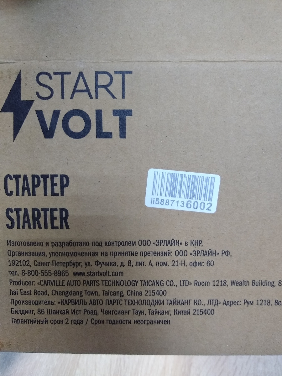 Не первый раз покупаю продукцию STARTVOLT. Нареканий нет. Стартер крутит бодро. Доставка на 5 баллов, упакован надёжно.