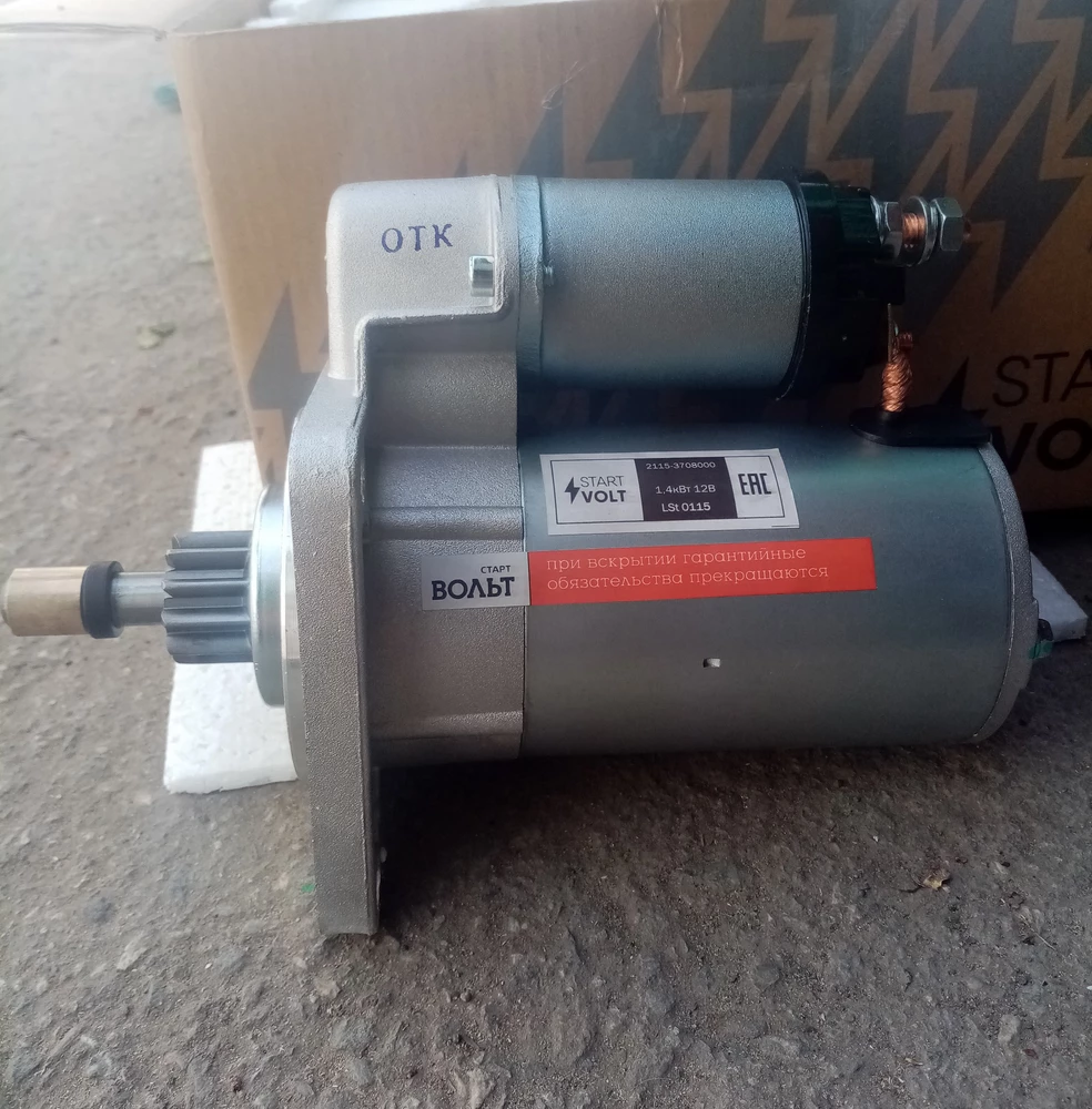 Товар пришёл в отличном качестве, упаковка целая, стартер запломбирован, знаки отк, уже в работе, нареканий нет.