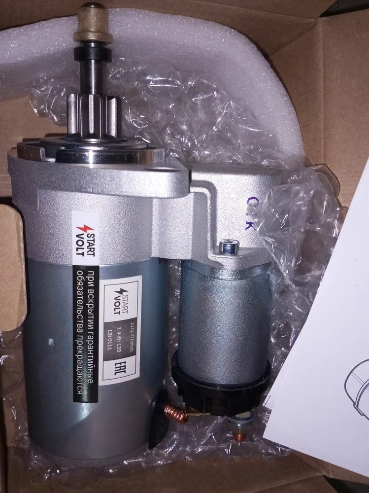 Упаковано плохо, втулки не было в комплекте. К самому стартеру претензий нет. Стартер рабочий, крутит хорошо, посмотрим сколько прослужит